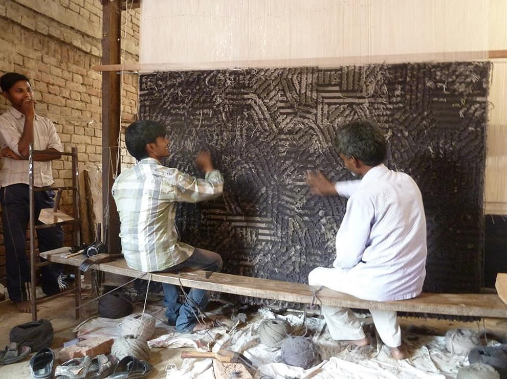 Alfombra de gran calidad, fabricada por el sistema Hand tufted, con lana 100%, procedente de Nueva Zelanda. Densidad 124000 nudos por m/ 2, altura del pelo entre 8 i 12 mm. Grosor total de la alfombra 18 mm. Peso 5,1 kg/m2.