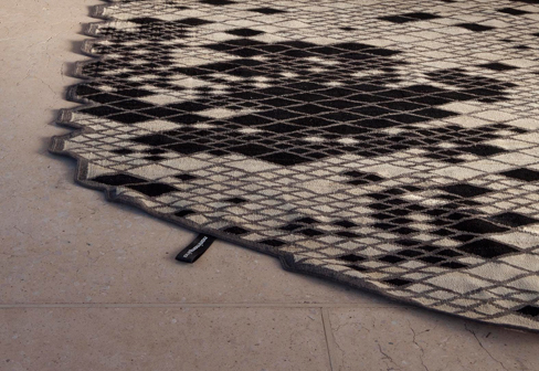 Alfombra de gran calidad, fabricada a mano, con técnica Hand women con lana Algana 100% hilada a mano. Densidad 156000 nudos por m/ 2, altura del pelo 4 mm. Grosor total máxima de la alfombra 4 mm. Peso 1,4 kg/m2