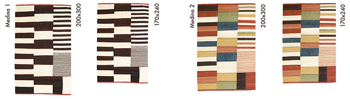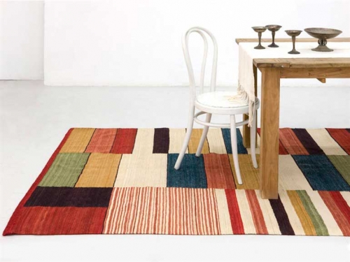 Alfombra de gran calidad, fabricada a mano, con técnica Hand women con lana Algana 100% hilada a mano. Densidad 156000 nudos por m/ 2, altura del pelo 4 mm. Grosor total máxima de la alfombra 4 mm. Peso 1,4 kg/m2