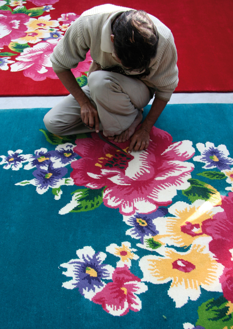 Alfombra de gran calidad, fabricada por el sistema Hand Knotted a mano, 100 % de lana procedente de Nueva Zelanda. Densidad 86000 nudos por m/2, altura del pelo 11 mm. Grosor total de la alfombra 15 mm. Peso 4,5 kg/m2