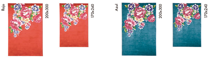 Alfombra de gran calidad, fabricada por el sistema Hand Knotted a mano, 100 % de lana procedente de Nueva Zelanda. Densidad 86000 nudos por m/2, altura del pelo 11 mm. Grosor total de la alfombra 15 mm. Peso 4,5 kg/m2