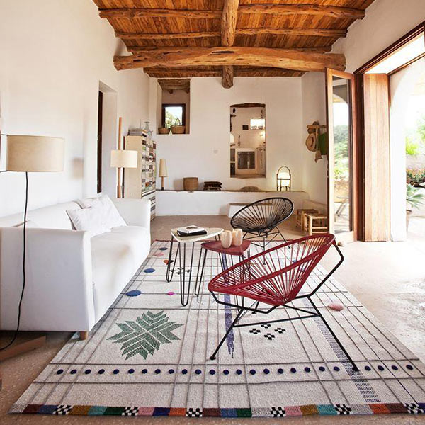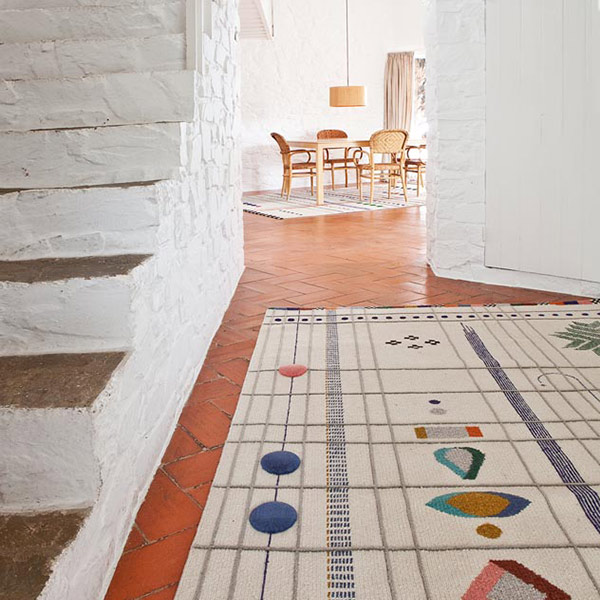 Alfombra de gran calidad, fabricada por el sistema Hand knotted y hand women, tipo Indu Nepal, con lana 100 % de Nueva Zelanda. Densidad 124000 nudos por m/ 2, altura del pelo 5-10 mm. Grosor total de la alfombra 13 mm. Peso 2,6 kg/m2.