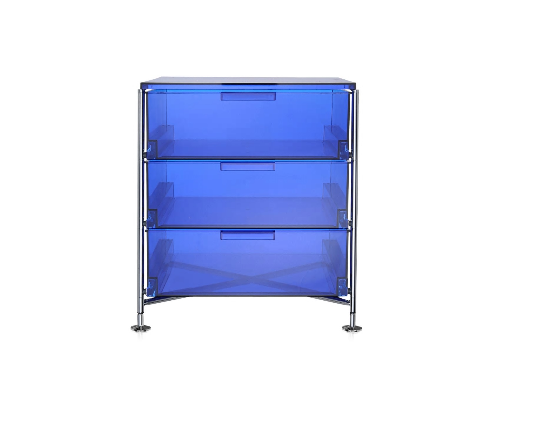 Contenedores de entre 1 y 6 cajones de estructura de acero cromado i contenedores y estantantes de PMMA resistente a los golpes con barniz antiarañazos