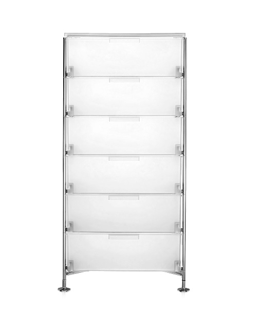 Mobil es un sistema de contenedores con distintos usos que se adapta a cualquier ambiente, tanto en casa como en la oficina. El cajón, alternado con las repisas y las partes superiores, es el elemento básico del sistema. Mobil puede ser una sencilla cajonera de entre 1 y 6 cajones, y puede tener tiradores. Puede configurarse con apoyo sobre ruedas o con apoyo fijo, lo que fomenta el uso de Mobil en diferentes contextos: desde el dormitorio hasta el salón, pasando por el baño, o en la oficina o el estudio como cajonera de escritorio para guardar material y documentos.