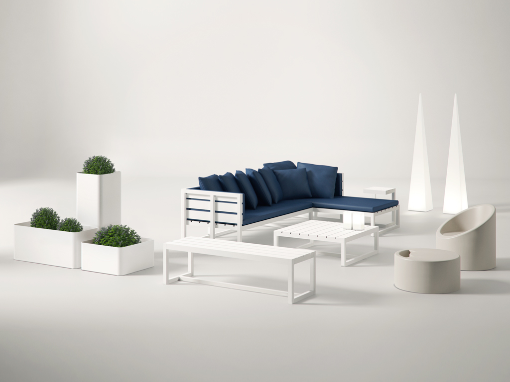 El diseño sobrio de sus líneas la convierten en un banco contemporáneo que se adapta con naturalidad y elegancia a cualquier espacio de exterior de reducidas terrazas a grandes instalaciones de contract.