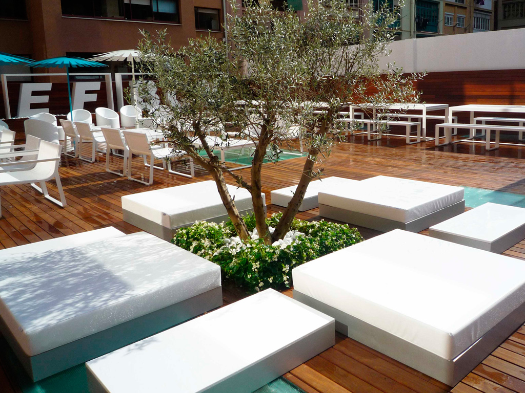 Más que una mesa de exterior, un complemento de exterior que puedes combinar hasta crear la composición Chill que mejor se adapte a tu espacio de exterior incluso en instalaciones de contract.