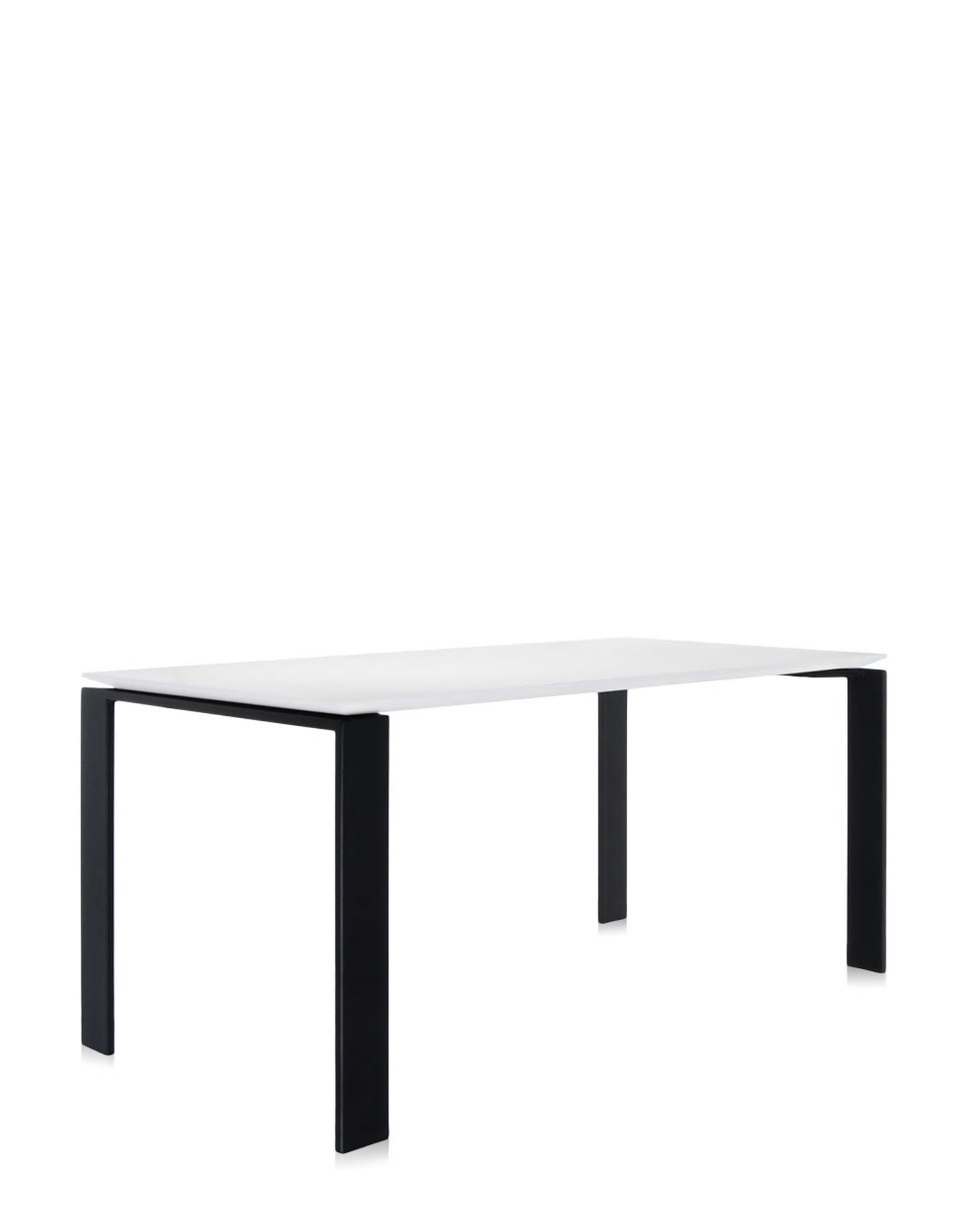 Four es una mesa moderna, caracterizada por un diseño riguroso y geométrico; funcional y refinada, con un diseño de líneas rectas y geométrico. Gracias a una elegante solución del proyecto, la posición del delgado tablero permite colocar fácilmente cajoneras o muebles contenedores para soportes informáticos. En oficinas se puede utilizar combinando varios elementos para componer zonas operativas. Su estructura metálica es de acero barnizado y su superficie es de madera laminada anti rasguños lo que le permite una gran funcionalidad y versatilidad. Made in Italy cuenta con una estructura de acero barnizada en color blanco, negro o aluminio y superficie de laminado anti rasguños de 2.5 cm de espesor disponible en color blanco o negro.