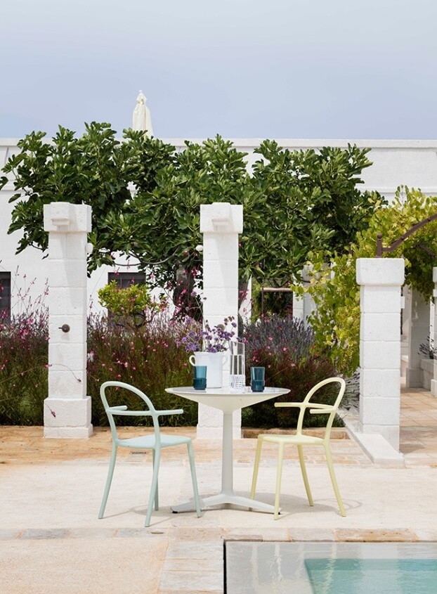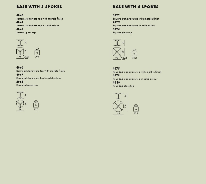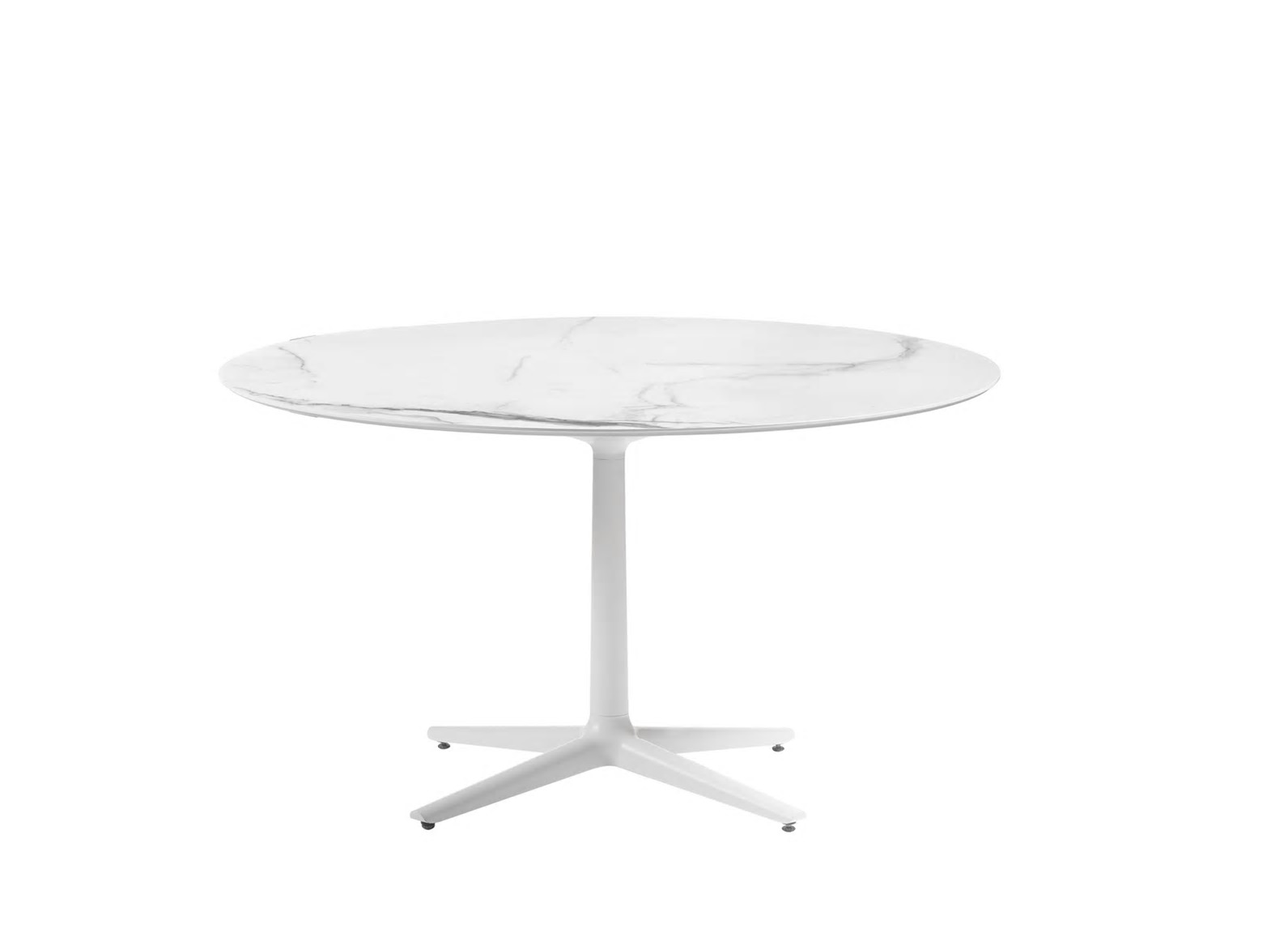Multiplo es una gran familia de mesas, transversal en su uso y diseñada para permitir la personalización jugando con las formas (cuadrado redondeado, circular y ovalados) y la combinación de bases (base central, en dos, tres o cuatro radios) y tableros (en gres sólido o acabado de mármol y vidrio).