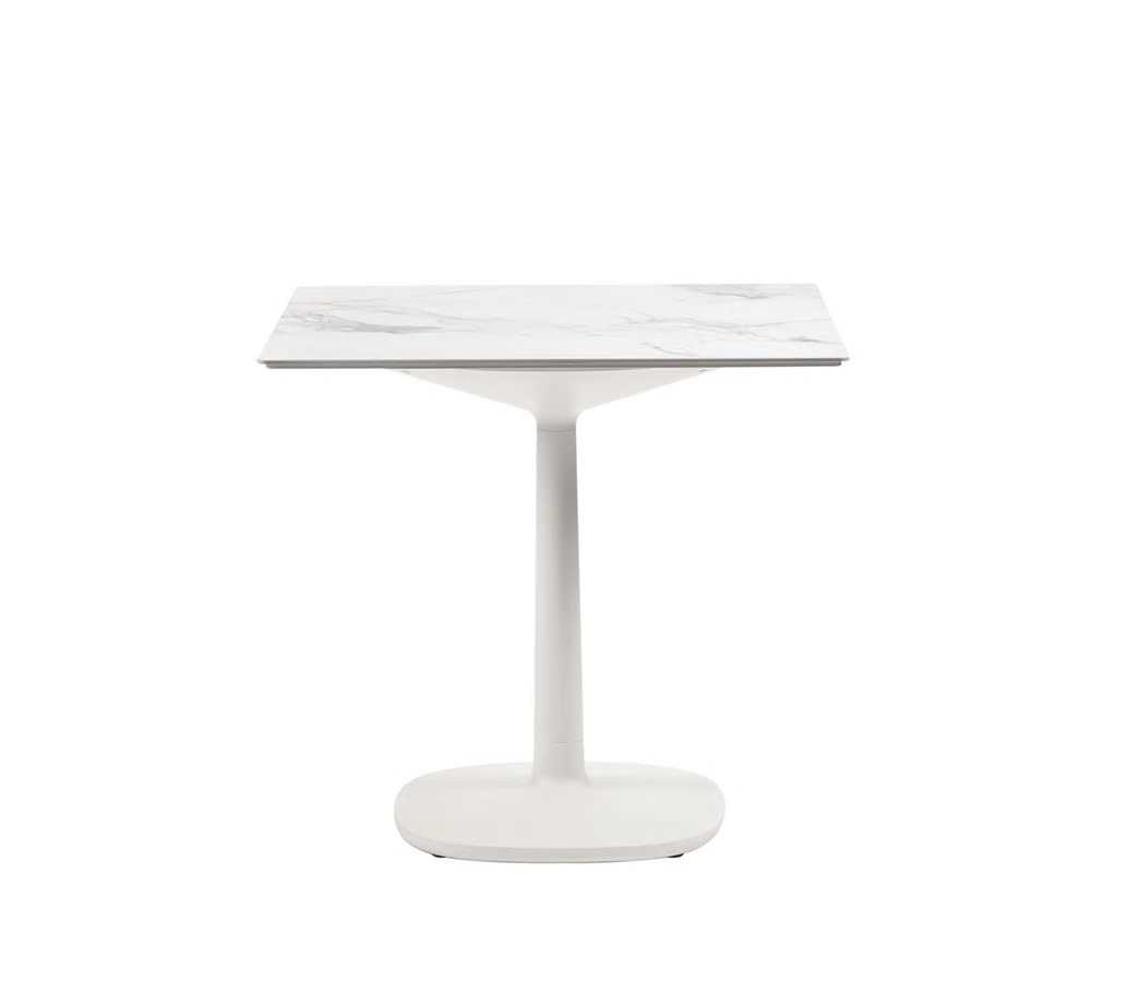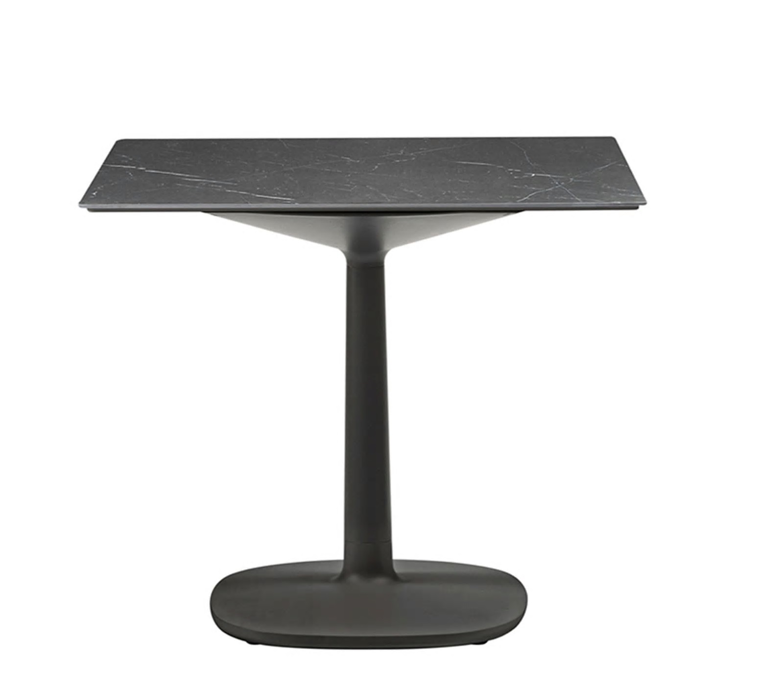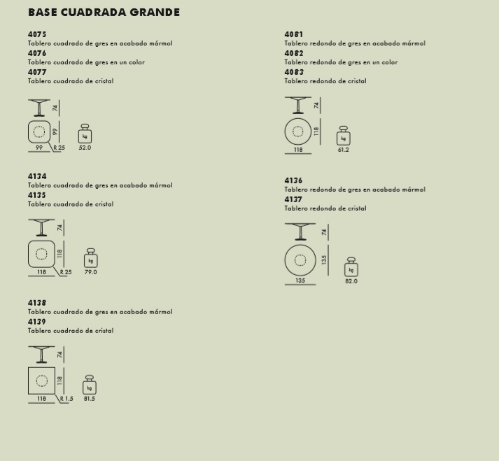 Multiplo es una gran familia de mesas, transversal en su uso y diseñada para permitir la personalización jugando con las formas (cuadrado redondeado, circular y ovalados) y la combinación de bases (base central, en dos, tres o cuatro radios) y tableros (en gres sólido o acabado de mármol y vidrio).