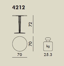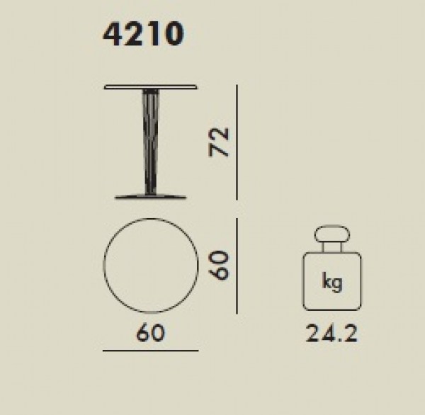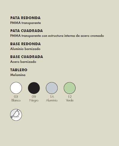 TopTop se caracteriza por la pata de PMMA que puede ser transparente de sección redonda o cuadrada, con la superficie tallada y el ánima de metal.