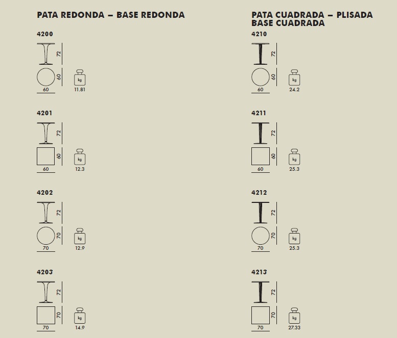 TOPTOP SOBRE MELAMINA CUADRADA 70 PATA/BASE REDONDA